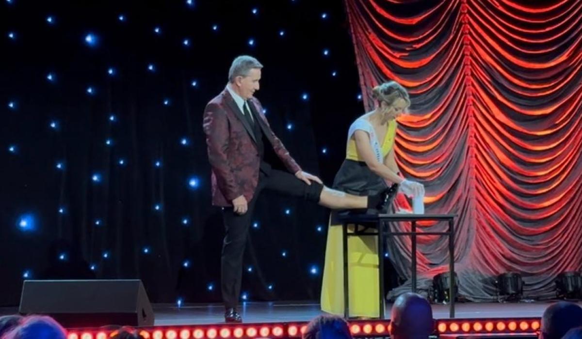 The first-ever Connacht Mary, Caragh Ryan, waxed Daniel O’Donnell’s leg on stage.