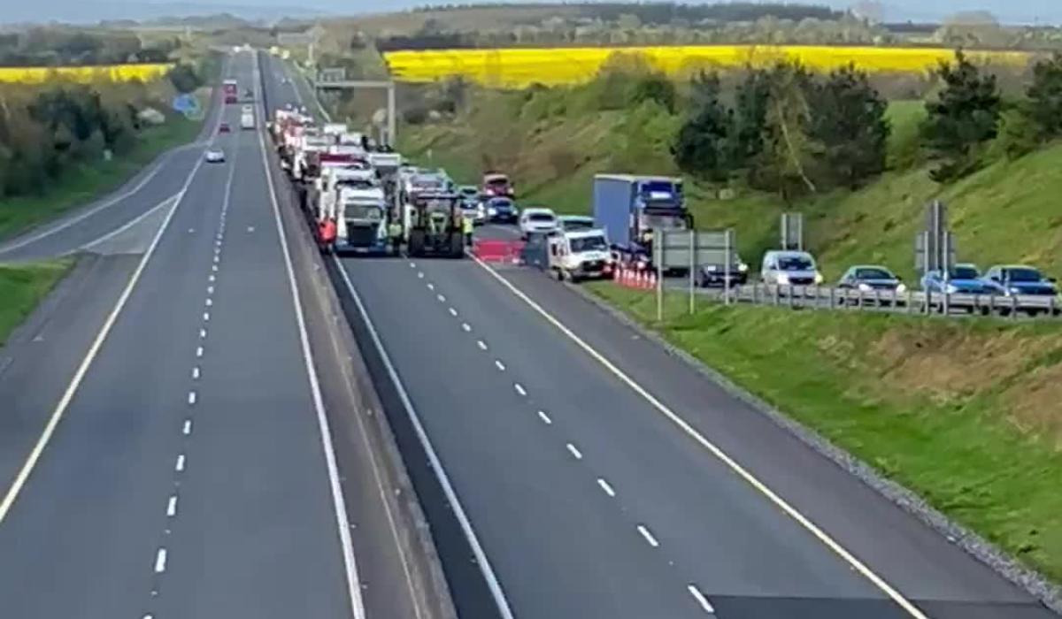 It's just one of a number of blocked motorway points around the country on day three of the protests, and traffic in Dublin is at a standstill as well. Justice Minister Jim O'Callaghan has said the gardaí have called on the Army to deal with fuel protesters blocking critical infrastructure such as fuel depots.
