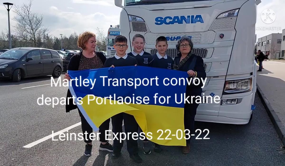 Nearly 2,000 Portlaoise students gave a huge send-off today to a local trucking business setting off for the Ukraine border today, packed with donations from the community.